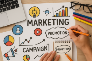 A promotional email campaign involves sending a series of emails to potential or existing customers for the purpose of raising brand awareness, increasing sales or promoting a new product or service.