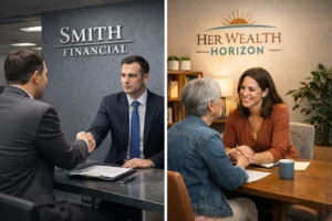 Advisor B (Differentiated): “Her Wealth Horizon” They target specifically divorced women over 50 navigating financial independence for the first time. Their voice is empathetic but empowering. Their marketing content addresses highly specific pain points about dividing assets, alimony strategies, and rebuilding financial confidence.